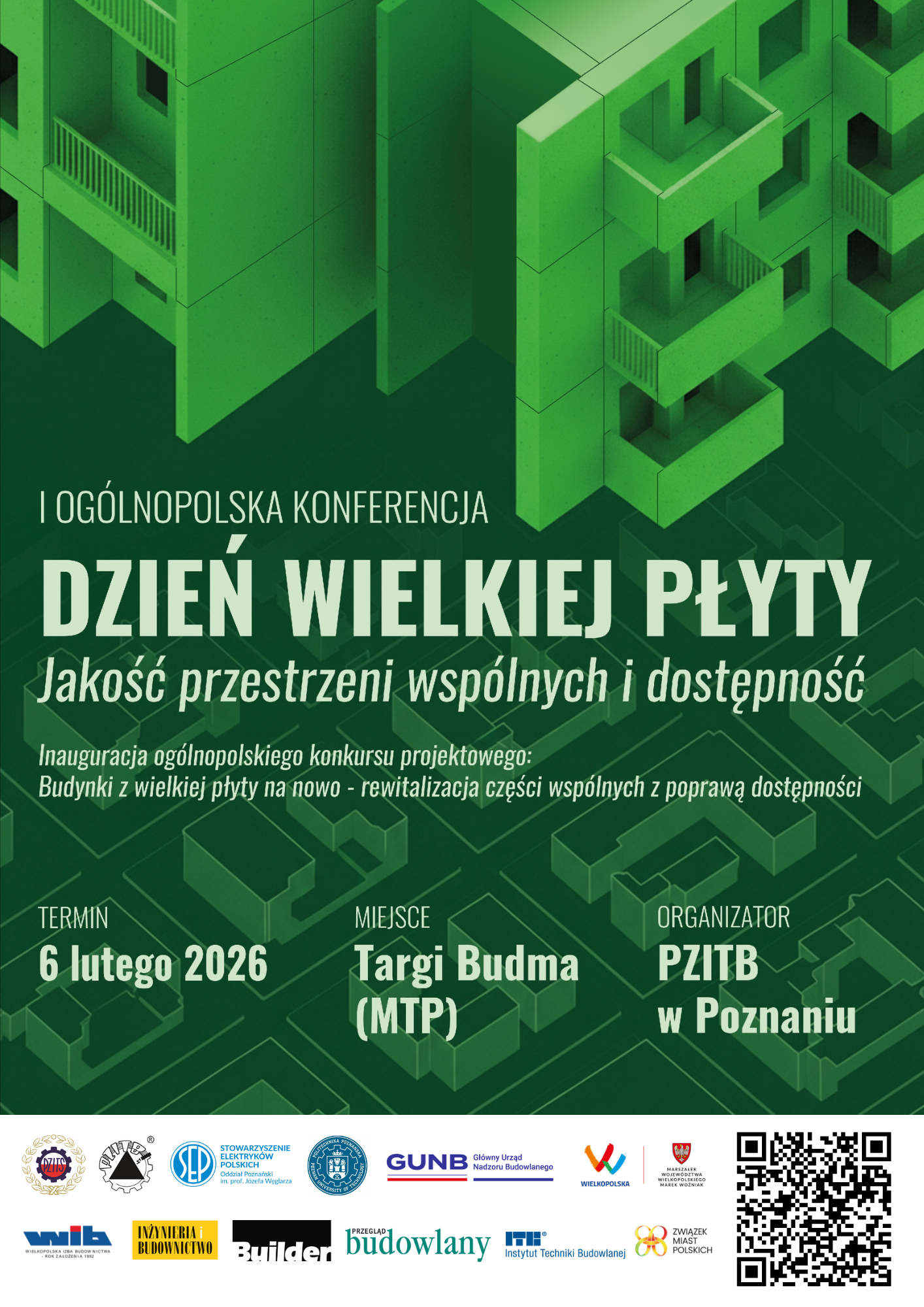 Instytut Techniki Budowlanej objął patronatem I Ogólnopolską Konferencję Dzień Wielkiej Płyty odbywającą się w Poznaniu 6 lutego 2026 r. w ramach Międzynarodowych Targów Budownictwa i Architektury Budma 2026 pod hasłem Jakość przestrzeni wspólnych i dostępność.